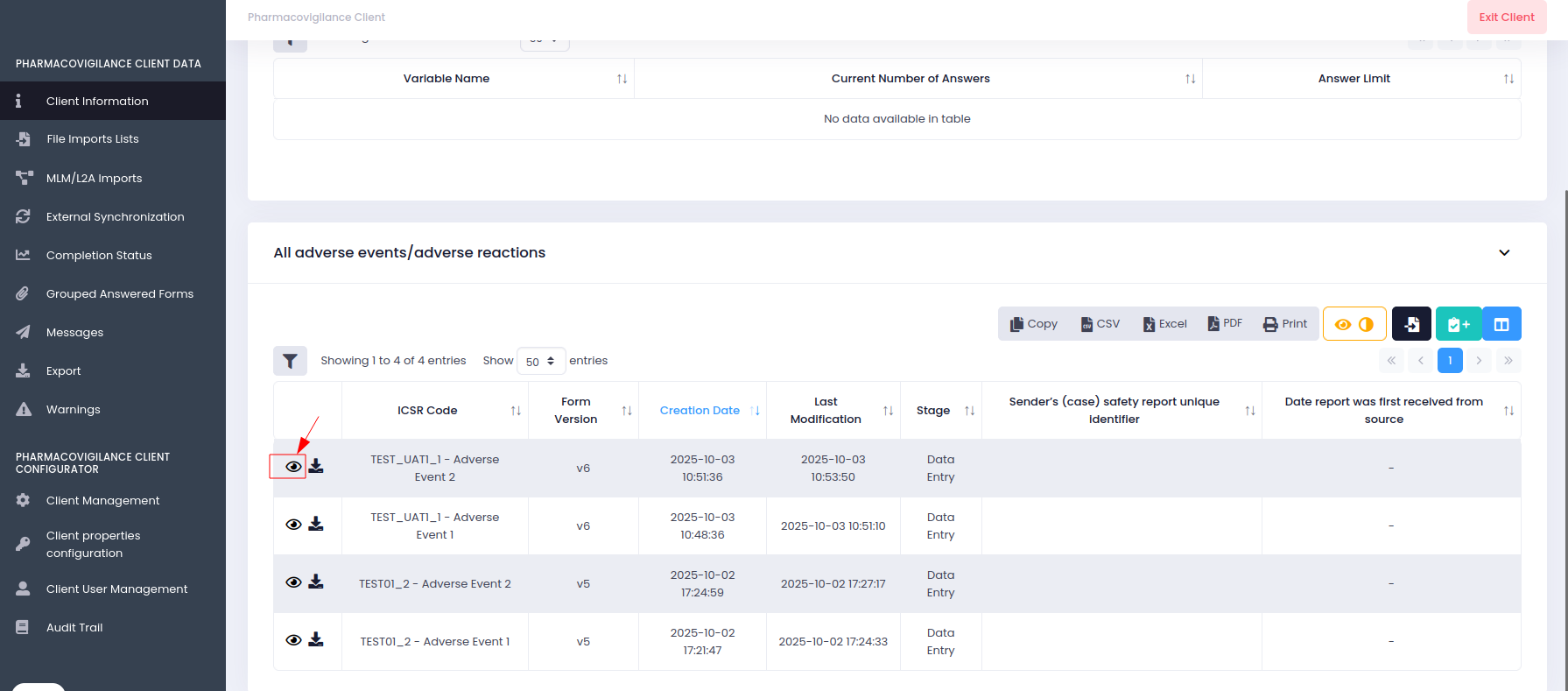 7) Once done, please go back to the initial page ("Client Information") and start going through and filling your forms. You can access the inside of these imported forms by clicking on the eye symbol below for each form: